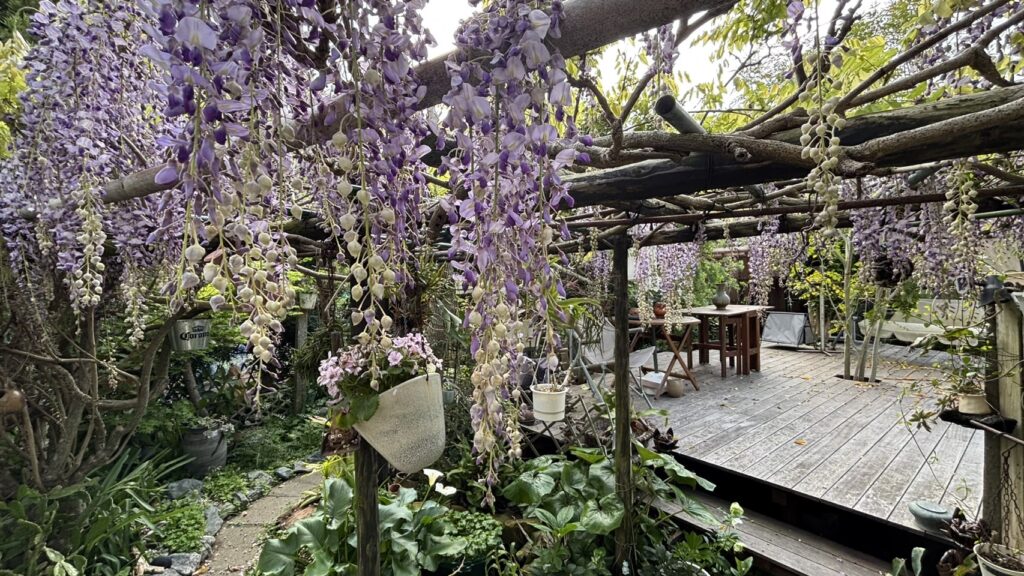 糸島の陳先生のご自宅では、今年もお庭に藤の花が咲き乱れ春の植物が一気に芽吹いています🌸