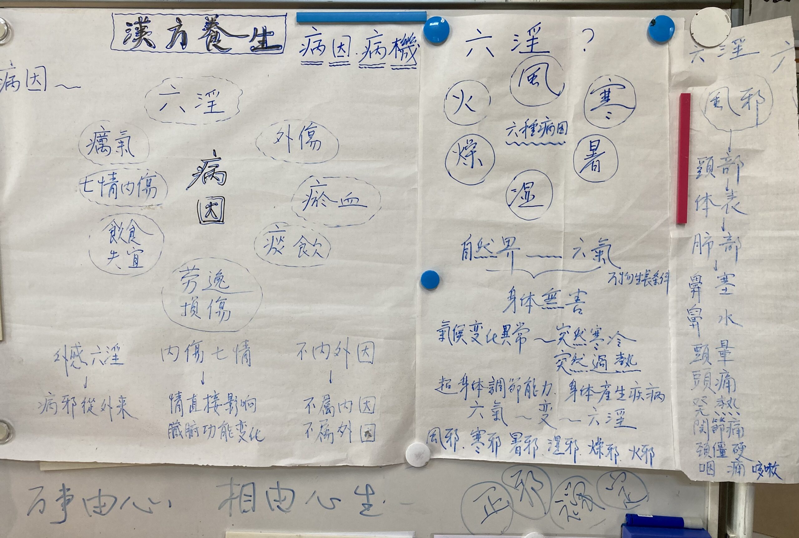 漢方養生の講義では、病因や病機についての説明や六つの病因の中の"風"(風邪)について詳しく学習しました。